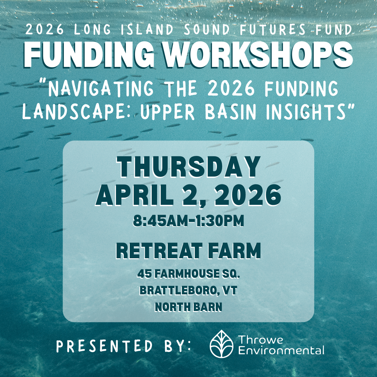 NFWF and Throwe are pleased to announce two free, in-person workshops designed to share information about the funding outlook for nonpoint source (NPS) pollution reduction; stormwater management; aquatic, riparian, and floodplain restoration; and resilience projects in the Long Island Sound's Upper Basin.